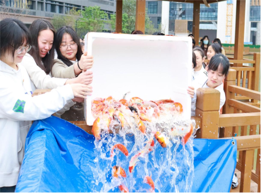 锦鲤象征着富贵、吉祥、健康和幸福。这不仅是毕业生们对未来生活的向往,也是对母校的美好祝愿。活动中,工作人员把一袋袋装着锦鲤的袋子倒进泡沫箱。在工作人员的指导下,毕业生学生代表们与校领导一同缓缓地将锦鲤们倒进冰心湖中。同学们边放边高呼“学前教育学院毕业快乐!”这其中蕴含着对母校的美好祝愿与对未来锦绣前程的憧憬。