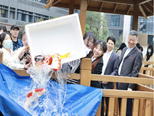 随后,参加仪式的毕业生代表们与老师们在冰心湖前进行合影留念。“‘锦’绣前程,‘鲤’赠母校”,代表着毕业生们对母校的无限眷恋和感激之情,更代表着学校对学子们的美好寄托。