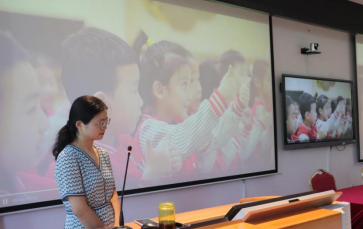 王丹丹副院长通过播放幼儿园短片,向同学们简要介绍一些高校教师和幼儿园所工作内容。她提出作为一名幼儿教师,要有“三爱“,分别是:爱教育、爱自己、爱幼儿。除此之外,在与幼儿相处的过程中,应做到有爱心,有耐心,有童心,对待幼儿要细心。她激励同学们要争做一个“四有”好老师:有道德情操,有理想信念,有扎实学识,有仁爱之心。告诫新生应该担起立德树人的责任,必须率先垂范,以身作则,帮助幼儿扣好人生的第一颗扣子。