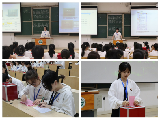 伴随着庄严的国歌声,大会正式开始。会议首先由轮值主席丘苏兰代表学生会作工作报告,对学生会一年来的工作进行汇报总结。随后,各部门竞选者依次进行竞选,本次换届以演讲、答辩、民主投票的形式进行,每位候选人结合自己的工作情况进行个人述职演讲,分别从竞选职位、自身优势、工作规划等方面展开阐述。经过紧张的现场投票、计票,最终产生了新一届的学生干部成员。