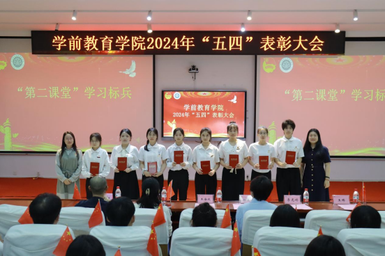 为深入学习贯彻习近平新时代中国特色社会主义思想,激励与引导广大学前青年继承五四精神,发挥青年典型模范带头作用,团结引领广大青年热爱祖国和砥砺奋斗,2024年5月21日下午,学前教育学院在旗山校区教学楼2018教室隆重举行了2024年“五四”表彰大会。学前教育学院党委副书记(主持工作)王海波、党委副书记杨美玲、学院辅导员老师以及受表彰个人和集体参加了大会,会议由学院团委副书记林丞主持。