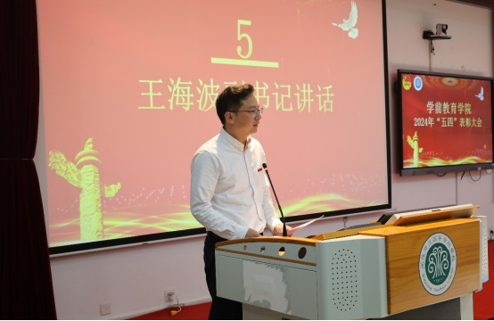最后,学前教育学院党委副书记王海波作总结讲话。他代表学院向受到表彰的先进集体和个人表示热烈的祝贺,向长期以来关心青年成长、致力于青年事业的同志们表示感谢。王海波强调青年是国家的未来和希望,学前教育学院的学子们要肩负起历史使命,勇担时代重任,努力成为德智体美劳全面发展的优秀人才,为学院各项事业发展贡献青春智慧和力量。大会在激昂的团歌声中圆满结束。