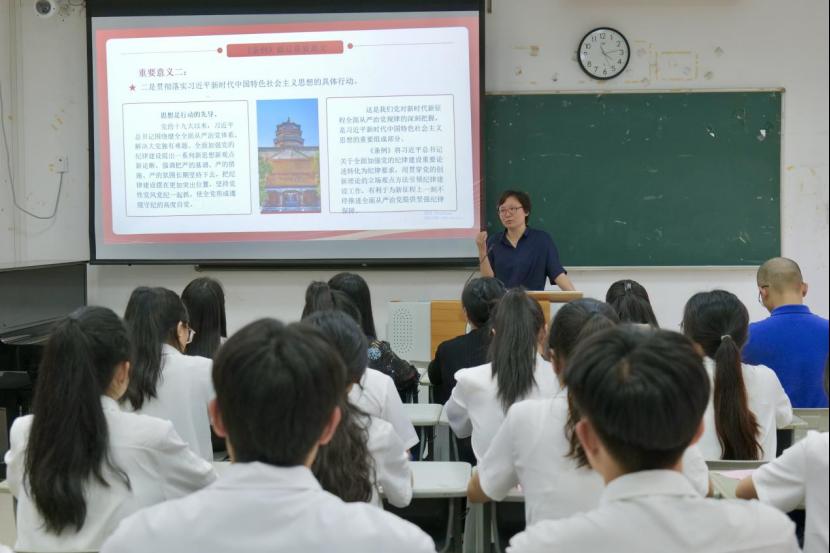 6月13日下午,学前教育学院党委副书记杨美玲老师为毕业生党员上在校期间“最后一课”。她向同学们详细解读了《中国共产党纪律处分条例》的修订意义和亮点,并结合同学们的专业和就业方向,重点提醒可能存在的风险点。她希望毕业生党员保持廉洁品质,自觉遵守党的纪律和规矩,以身作则,率先垂范,为营造“学纪、知纪、明纪、守纪”的浓厚氛围做贡献。