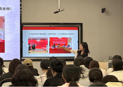 为了向新生传递师德师风的重要性,强化新生对教师职业道德的认识和理解。2024年10月11日晚,学前教育学院在产创楼107教室开展了“冰心教育奖”师德标兵宣讲活动,本次宣讲活动的主讲人是学院副院长王丹丹老师。