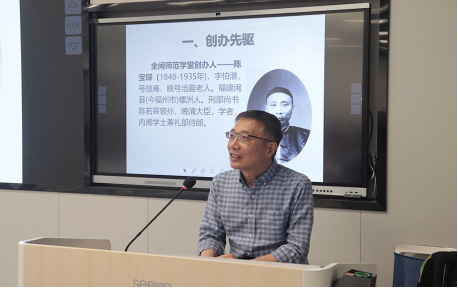 接着,姚翔老师生动讲述了学校创办先驱陈宝琛、校友邓英萃、李宝俊、刘佐成、林默涵等知名专家学者的光辉事迹和感人故事,向同学们介绍了“立教八闽,涵育四海”的闽师精神和“一切为了学生的发展和未来而设计”的办学理念,强调校史中蕴含的理想信念、爱国情怀、革命精神,希望同学们赓续红色基因,传承红色薪火,筑牢理想之基、坚定强国之志、砥砺报国之行。此外,姚翔老师还特别阐释了“养浩然气,广仁爱心”的校训精神,并着重强调了“厚德载物”的实践价值,鼓励新生们将校训精神内化于心、外化于行,成为指引自己成长成才的明灯,希望同学们珍惜大学时光,以校训为镜,砥砺前行,不负韶华,为闽师专的明天添砖加瓦。