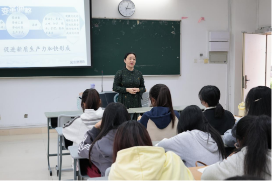 课程伊始,林毓君院长向学生讲解了发展新质生产力的意义和内涵。她指出,新质生产力具有高科技、高效能、高质量的特征,特点是创新,关键在质优,本质是先进生产力。课堂上,林毓君院长以通俗易懂且生动形象的方式,向同学们阐释了新质生产力的深刻内涵与重要意义。从前沿科技的创新应用到产业模式的变革转型,林毓君院长结合实际案例,详细剖析了新质生产力在当下经济社会发展中的多样表现形式。