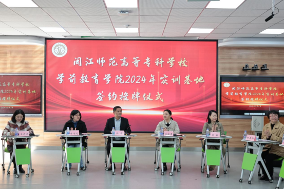 12月11日上午,学前教育学院在闽江师专旗山校区举行2024年实训基地签约授牌仪式。学院党委书记林冉,院长林毓君,副院长陈闽光、吴敏、王丹丹,副书记杨美玲,综合科科长郭剑恩和福州市晋安区直属机关幼儿园、福州市鼓二小石井集团幼儿园、福州市台江上下杭幼儿园、福州市延安教育集团延安幼儿园、福州市永南幼儿园、福州市至心幼儿园、福州市鼓楼区海贝贝幼儿园、福州翼贝彼儿童文化发展有限公司等8家单位负责人及学院教研室主任、副主任,专业负责人和教师代表参加了本次签约授牌仪式。仪式由学院副院长王丹丹主持。