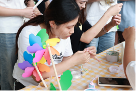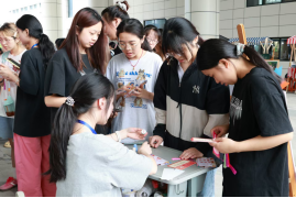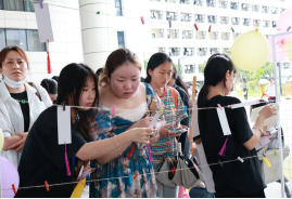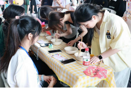 本次游园会设置了六大童趣关卡和两大手作工坊体验区。六大关卡各具特色,有推动饮料瓶定乾坤的“好运滚滚乐”,精准投射赢积分的“趣味套圈圈”,考验技巧与耐心的水上漂移计时赛“吹球大作战”,智慧比拼的“灯谜猜猜乐”,以及筷子夹红豆的“红豆妙手侠”和纸飞机投掷竞技的“纸翼飞扬赛”。两大手作工坊也备受青睐,在“珠光宝串”区,师生们用五彩珠子串出专属手链、项链;“彩漆扇艺”区,大家旋转团扇沾取彩漆,让团扇变得绚丽多彩。