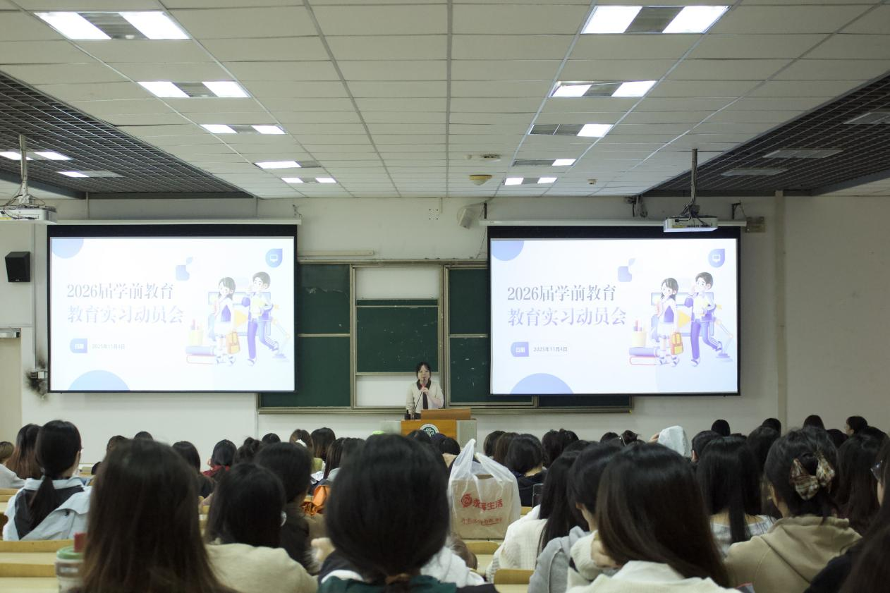 2025年11月4日,学前教育学院在求知楼3018教室组织2026届学前教育专业毕业生召开教育实习动员会,全面部署教育实习工作。会议由我院任秋燕老师主持。