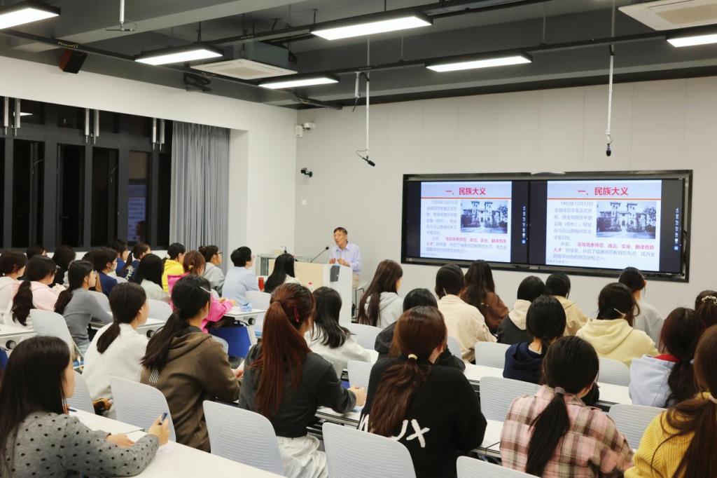 整场讲座氛围浓厚,师生们专注聆听,在一个个鲜活的先辈故事中汲取力量,将红色精神与使命担当深深镌刻于心。此次讲座推动师生在思想引领与责任赋能上实现双向提升,进一步筑牢了“教育报国”的信仰根基。未来,学院学子也将以先辈为镜、以校训为魂,砥砺前行、不负韶华,在新时代续写“教育报国”的青春答卷。