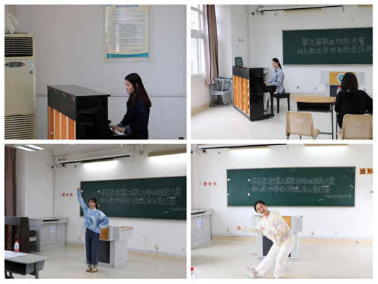 本次比赛包括两个环节,分别是幼儿歌曲弹唱和歌表演。比赛开始前,参赛选手们抽取要展示的曲目。在幼儿歌曲弹唱环节,参赛选手们到达指定教室后,根据抽取的曲目进行弹唱。弹唱过程中,大家认真、专心地投入到歌曲的演奏中,教室里不时传来一首首动听的儿童歌曲。在歌表演环节,选手们用生动活泼的肢体语言表达了对歌曲的理解,充分展示了学前学子的活泼形象,现场竞赛氛围十分浓烈。
