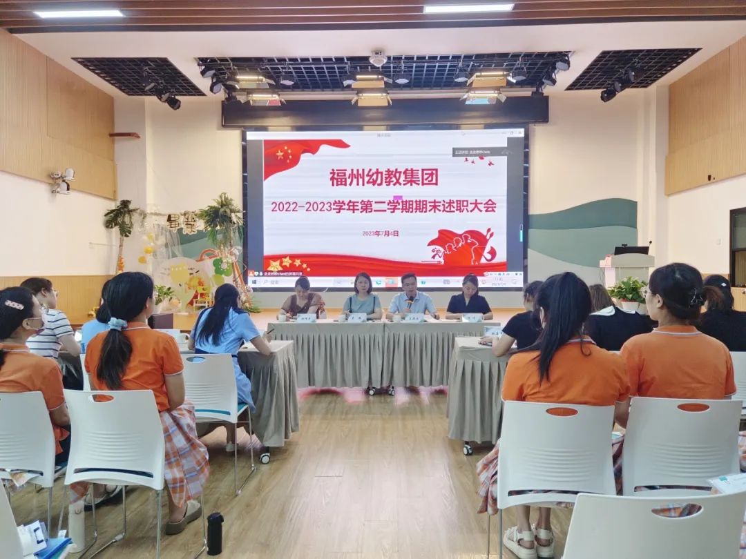 2023年7月4日,福州幼教集团2022-2023学年第二学期期末述职大会在附属实验幼儿园二楼多功能厅召开。集团党委书记王海波、总园长吴敏出席会议。本次会议采取线上与线下相结合的方式,确保会议精神落实到位,为本学期工作画上圆满的句号。