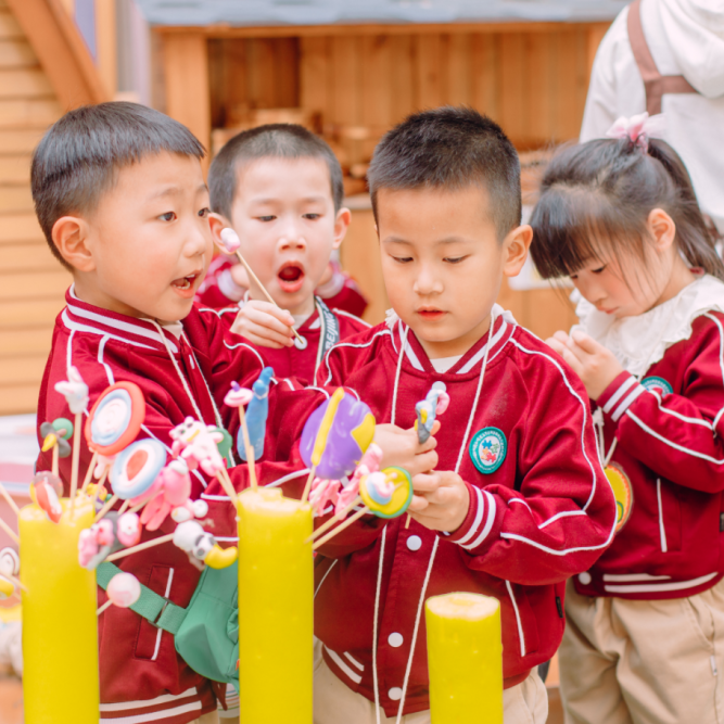半岛时光混龄创造性游戏是孩子们最喜欢的游戏,由十个场馆组成,每个馆都是一个小型角色游戏,馆内有多种角色分工,每一个分工各具特征,又互相联动。幼儿将生活经验带入游戏情境中,又在游戏中提升经验,在游戏中生发课程。这种打破班级、年段界限,创新户外自主游戏模式,充分利用户外、功能室空间,和幼儿一起营造了一个又一个属于自己的游戏空间,制定了夏令时和冬令时两种场地使用制度,不管是从课程和还是从环境入手,都更加尊重和包容幼儿不同的个性,让孩子在半岛时光游戏里消除束缚感,尽情地扮演,恣意地游戏,让孩子成为表现美、创造美的主人。