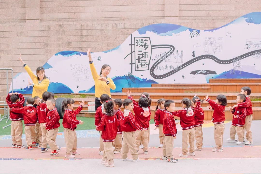 在早操编排的过程中,闽师附幼的教师们认真思考并巧妙融入了大量的中国传统文化元素,大班的双截棍、中班的“乾坤圈”,动作设计也符合各个年龄段幼儿的学习特点以及身体发展规律,让早操在多变的游戏和动作中变得有趣且具有丰富的层次。