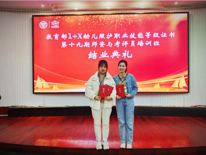 11月17日,我校学前系教师卓靓婷、余晓雪、护理学院袁双、林淑芳和陈苏莲等五位老师赴长沙参加为期6天的“第十九期1+X幼儿照护职业技能等级证书师资及考评员”培训,考取幼儿照护职业技能等级证书和考评员证书,并获得了优秀学员证。培训内容主要为:政策解读、实地参观、幼儿照护理论模块解读和实操练习。培训由宏观到微观,着眼于如何更好地实现产教融合、课证融通与理学一体,旨在提高学前系学生从业技能,增强与企业之间的零对接。