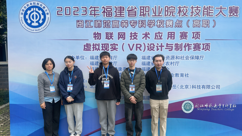 3月25日-26日,2023年福建省职业院校技能大赛(高职组)虚拟现实(VR)设计与制作赛项在闽江师专举办,全省30支代表队90名参赛选手同台竞技。经过一天的激烈角逐,由我校数字信息工程学院教师刘洁、王铁胜带队,学生朱钰洁、林锦航、许弘璨组成的代表队,秉承着精益求精的态度、奋勇争先的精神,取得了该赛项第一名的优异成绩。