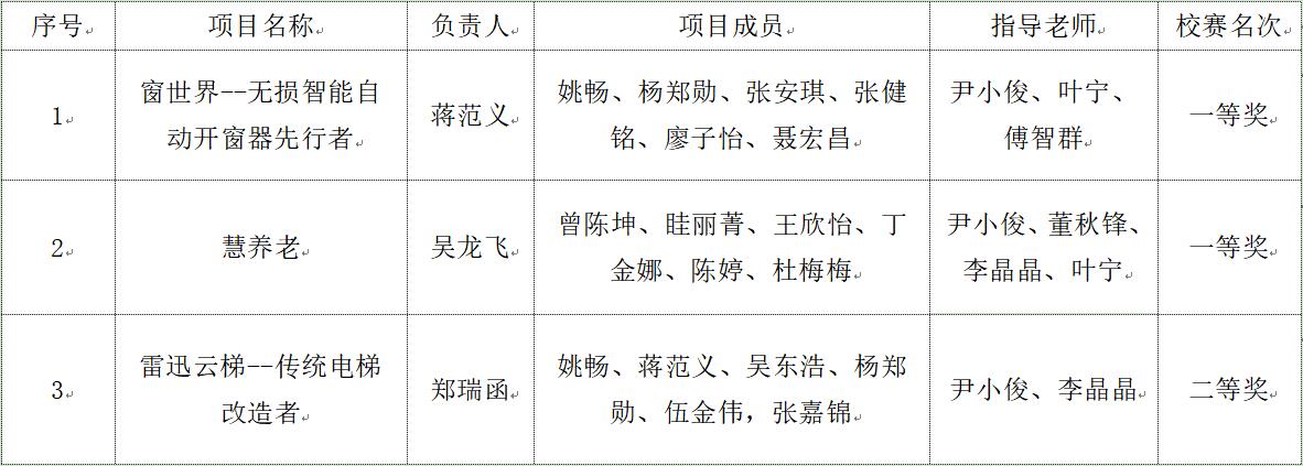 在本次校“互联网+”创新创业大赛中,我院共报送7个创新创业项目,其中2个项目获得鼓励奖,3个项目进入决赛环节。进入现场决赛的3个项目,经过与其他学院14个项目的激烈角逐,“窗视界”项目和“慧养老”项目获得本次比赛一等奖,“雷迅云梯”项目获得本次比赛二等奖。