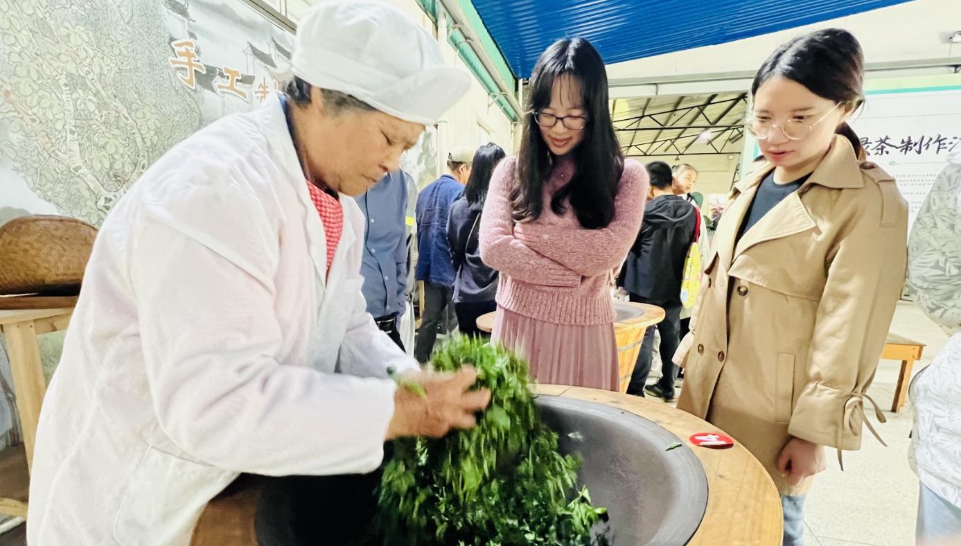 午餐之后,大家来到茶园的生产车间,由制茶师指导大家体验手工制茶过程。在传承民间制茶工艺的同时,培养勤于劳动、善于劳动、热爱劳动的美德。