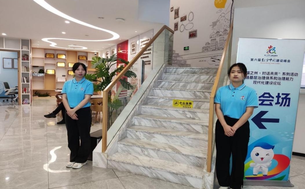 4月26日上午,第六届数字峰会“有福之州·对话未来”系列活动——加强基层治理体系和治理能力现代化建设论坛在仓山区金山街道中天社区举行。我院党委与中天社区建立深度结对共建关系,在得知中天社区需要大量青年志愿者之后,在全院发出了招募志愿者的号召。我院青年学生积极响应,经过学院严格选拔,包括学生党员、入党积极分子、学生干部在内的28名学生组成志愿服务队,承担本次论坛志愿服务工作。