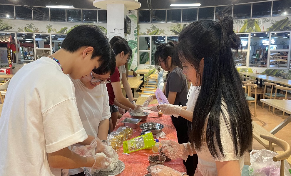 活动伊始,指导老师详细讲解了月饼的制作过程,并为大家准备好制作月饼的材料。学生党员与少数民族学生们将热水倒入冰皮月饼预拌粉中,揉搓面团至成型。随后历经捏团、放馅料、搓圆、模具压制等一道道工序一个个精美的冰皮月饼制作而成。大家品尝着以“情”为皮、以“爱”为馅的月饼,感受着中华民族传统节日的魅力,拉进了师生、学生之间的距离。