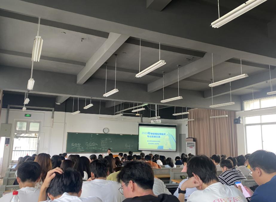 首先,尹小俊老师向学生介绍了本专业的未来发展前景,根据专业学习路径、课程安排向23级新生介绍了专业的培养目标和未来规划,鼓励学生们积极投入学习,可通过各类竞赛、实践活动不断提升自身的综合能力。