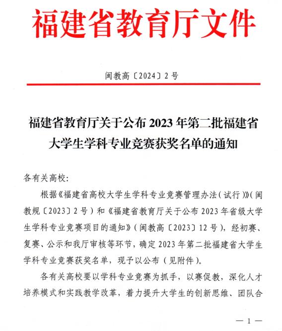 近日,福建省教育厅正式公布了2023年第二批福建省大学生学科专业竞赛获奖名单,数字信息工程学院在人工智能创意赛、数据安全大赛2个比赛中获得1项一等奖、1项二等奖、3项三等奖共5个奖项的好成绩。本次榜单的公布是对数字信息工程学院在学科专业竞赛领域取得成绩的肯定,也充分展示了数字信息工程学院在高素质复合型技术技能人才培养方面的实力。