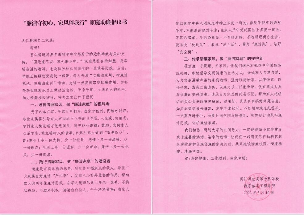 本次“廉洁家风”专题学习,大大提高了教师党员们营造廉洁家庭、塑造廉价家风的思想自觉、行动自觉。据悉,在端午节前,该学院还向每位教职工家属发放了一份《“廉洁守初心,家风伴我行”家庭助廉倡议书》,把队伍教育整顿和监督延伸到家庭,充分发挥家庭成员在廉政建设中的重要作用。