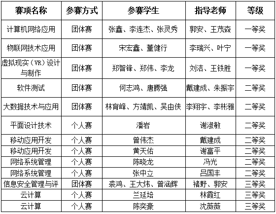 2022年福建省职业院校技能大赛高职组赛项计算机系获奖情况一览表