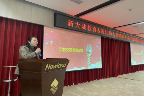 仪式结束前,林旻副校长嘱托同学们一定要树立终身学习的目标,要坚持理论联系实际学以致用,将所学知识与技能应用到工作岗位中,为区域经济的发展添砖加瓦。同时,林副校长对新大陆教育公司为此次行业岗位实训的大力支持表示衷心的感谢,也希望将来我校物联网应用技术专业在企业的大力支持下能够在产教融合道路上取得更好的成绩。