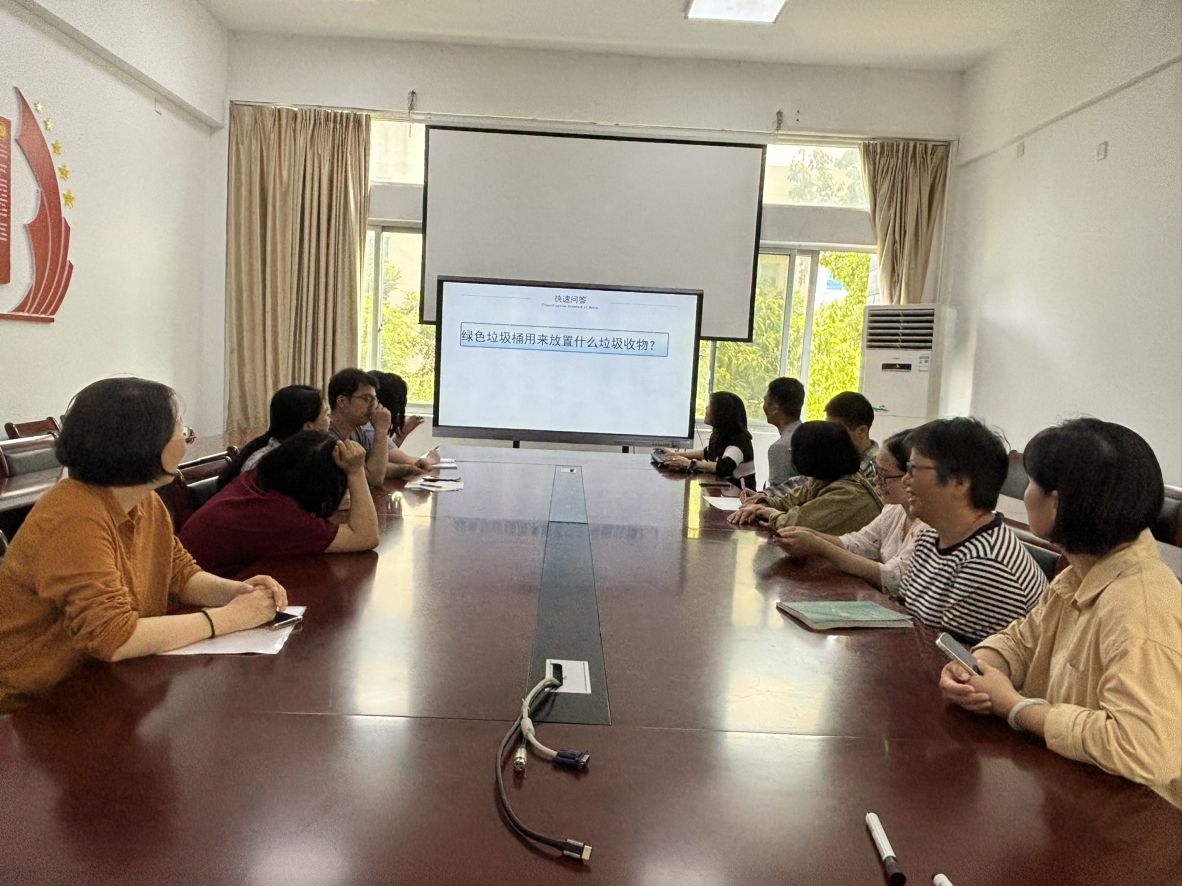 随后,由教师支部副书记王凤姣老师为党员们开设了一场生动的“垃圾分类”专题知识讲座。讲座中,王凤姣老师详细讲解了垃圾分类的重要性、分类标准和投放方法,使党员们对垃圾分类有了更深入的了解和认识。