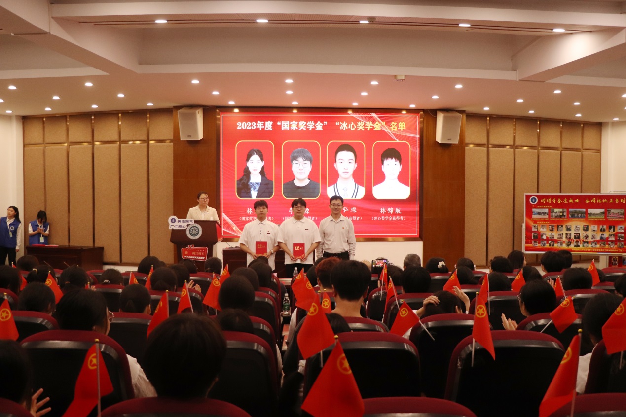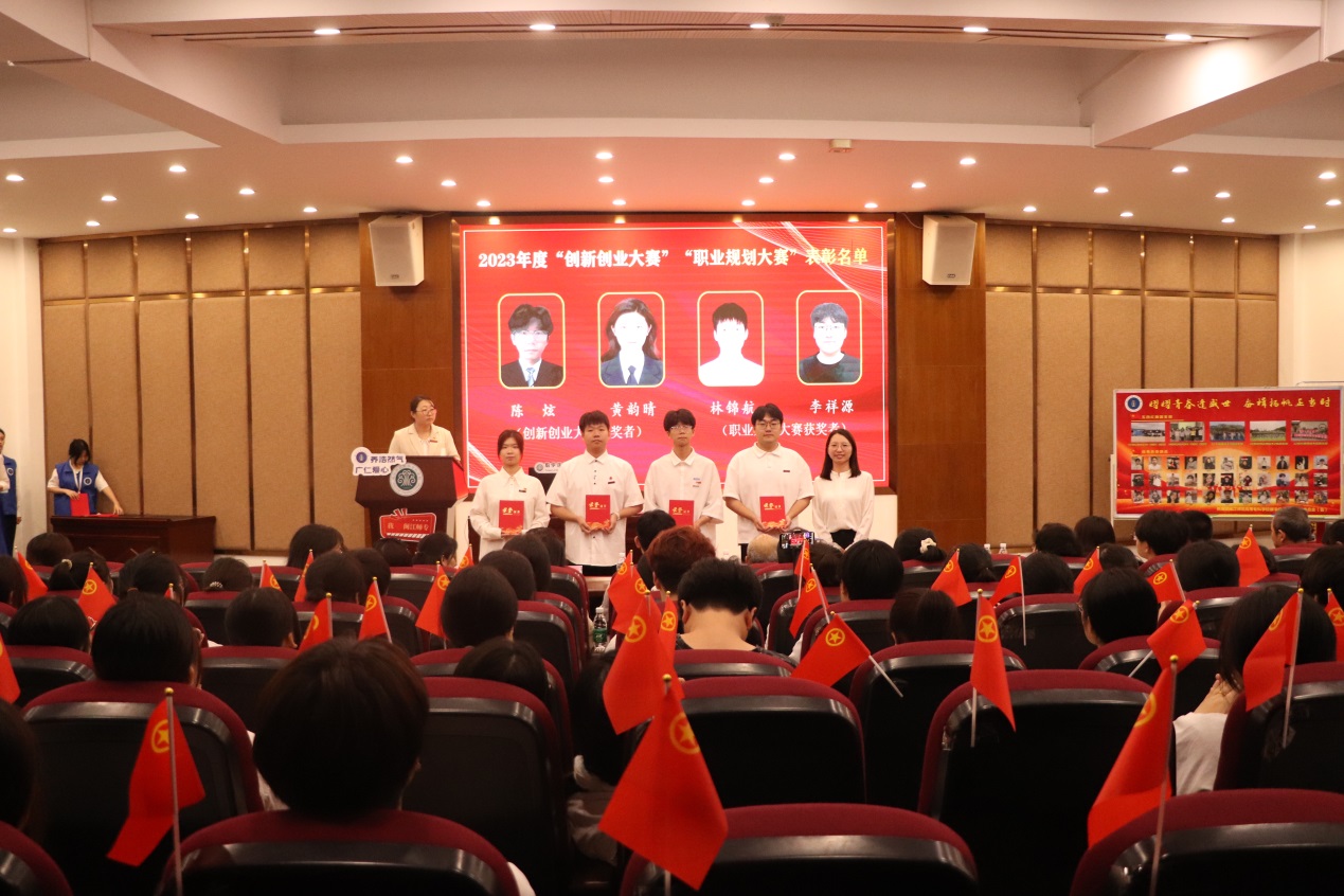 宣誓礼毕,朱发财院长宣读各项表彰决定,表彰对象涵盖五四评优先进集体和个人、第二课堂标兵、三好学生、优秀学生干部、创新创业大赛/职业规划大赛/职业技能大赛获奖者以及国家奖学金、国家励志奖学金及冰心奖获奖者。朱院长对各项奖项的获得者表示由衷祝贺,并希望他们再接再厉,继续保持昂扬向上的精神风貌,用奋斗书写更加辉煌的新篇章。