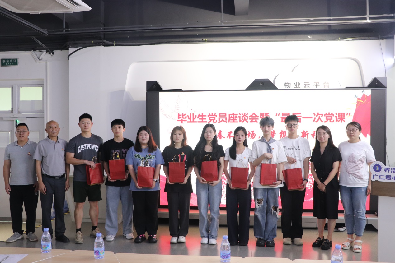 离校临别之际,在陈欣书记的带领下,与会师生党员重温入党誓词,激励师生党员不忘初心、牢记使命,接续奋斗。活动最后,陈欣书记一一为毕业生党员赠送了毕业“行囊”,一枚党徽、一本《中国共产党章程》、一本《中国共产党纪律处分条例》、一本红书,送上沉甸甸的“行囊”为毕业生党员“壮行”。