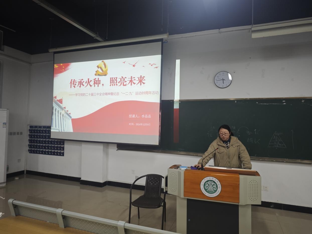 为进一步推动党的二十届三中全会精神落地生根,同时缅怀革命先烈,传承爱国精神,2024年12月9日,数字信息工程学院学生第一党支部书记李晶晶在仓山校区3#104教室为我院学生支部全体党员和入党积极分子开展了“传承火种,照亮未来”专题党课。