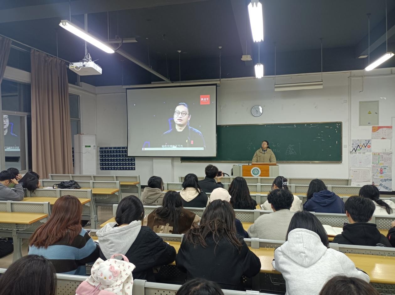 党课开始,李晶晶老师带领大家学习了《中共中央关于进一步全面深化改革、推进中国式现代化的决定》中关于“健全保障和改善民生制度体系”和“规范财富积累机制”的重要内容。接着,她结合“一二·九”运动89周年纪念日这个特殊历史节点讲解了“一二·九”运动事件的发生过程以及历史意义,强调了青年学生在国家和民族解放事业中的重要角色,勉励学生继承和发扬“一二·九”运动的爱国精神。党课最后,李晶晶老师带领学生观看了“青春榜样”王志鸥同志的视频,学习了他以科技艺术打造中国文化记忆的先进事迹。王志鸥同志作为新媒体艺术家,黑弓Blackbow创始人,他的作品不仅展现了中国青年的创新精神和爱国情怀,也激励着新一代青年为实现中华民族伟大复兴的中国梦贡献力量。
