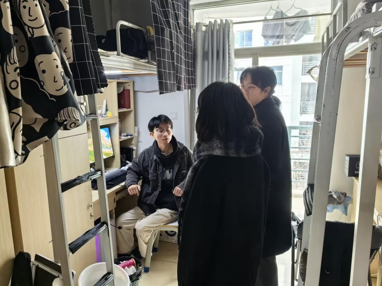 在走访过程中,学院领导老师们深入细致地与同学们交流,详细询问了大家假期的生活情况以及新学期的学习规划,并特别提醒大家,经过假期的放松,要尽快调整作息时间,适应校园生活节奏,以饱满的精神状态迎接新学期的挑战。同时,也鼓励同学们保持积极乐观的心态,在学业上勇于探索,在生活中互帮互助,共同营造和谐向上的宿舍氛围。