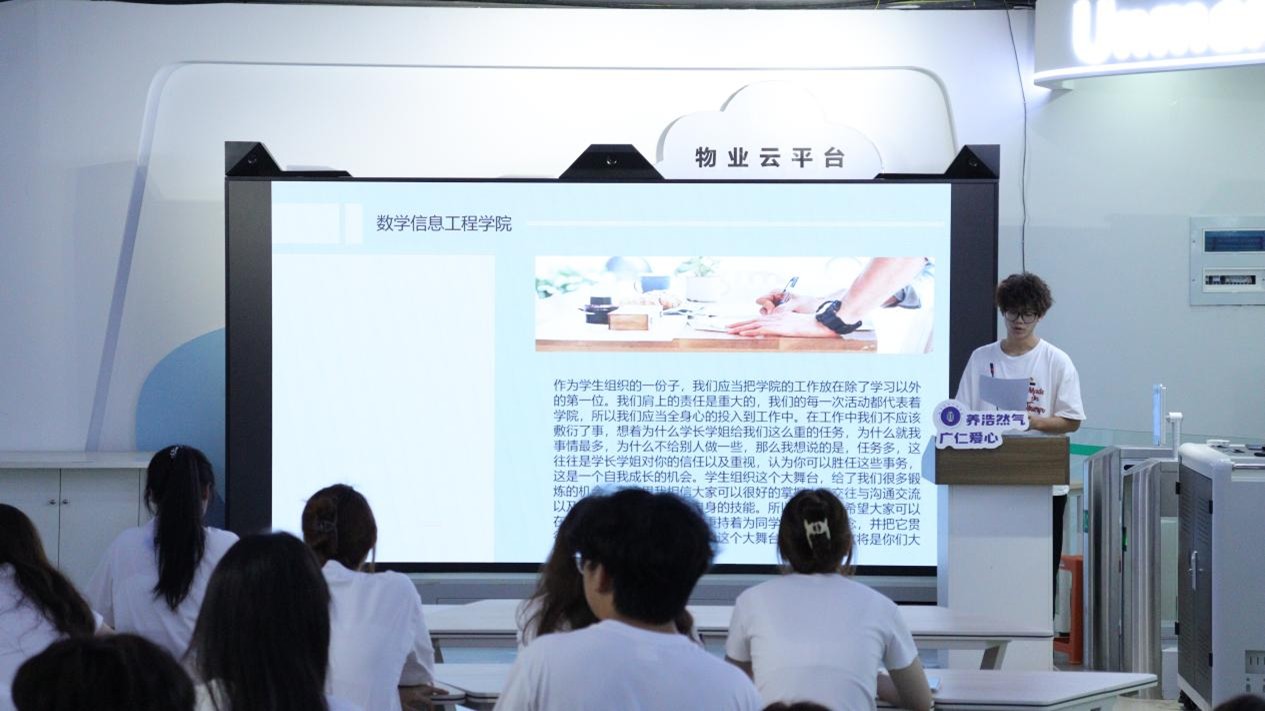 活动伊始,主持人王钟雯带领大家观看了《建党伟业》中关于五四运动的相关片段,并围绕五四精神传承进行了讨论。接着,团委学生会各部门代表依次上台,分享本部门一年来取得的成绩,表达了对未来工作的期待与决心。随后,团委学生会办公室主任陈佳豪和青年志愿者协会会长林思婕作为学长学姐代表,用自身的亲身经历为在场的学生干部分享了关于活动组织、沟通协调等方面的经验和感悟。在交流互动环节,干事们纷纷就工作中遇到的问题和困惑进行提问,学长学姐进行了耐心解答。最后,主持人号召全体青年干部牢记五四精神,以青春之我创建青春之国家、青春之民族;同学们纷纷表示将珍惜干部身份,尽职尽责做好分内工作。