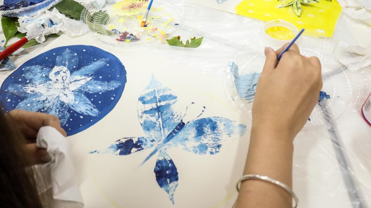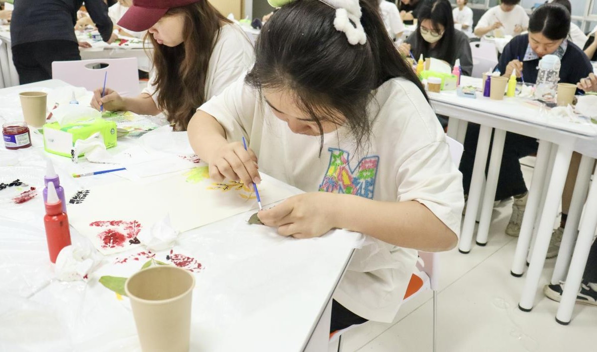 这次植物拓印活动不只是一场简单的手工创作,它更像是一场心灵的治愈之旅。在敲击叶片、拓印纹理的过程中,同学们沉浸其中,暂时忘却了学习的压力,获得了沉浸式的放松体验,仿佛时间都慢了下来。看着那些鲜活的植物在自己手中变成艺术品,大家更加深刻地感受到了生命之美,内心也愈发平和、愉悦。