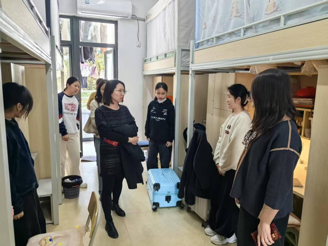 为切实做好清明假期学生安全教育管理工作,及时排查并消除各类安全隐患。4月3日,数字信息工程学院党委副书记董秋锋、综合科科长范玉婷以及全体辅导员老师一同走进学生宿舍,开展节前走访慰问工作,与同学们进行亲切的交流。