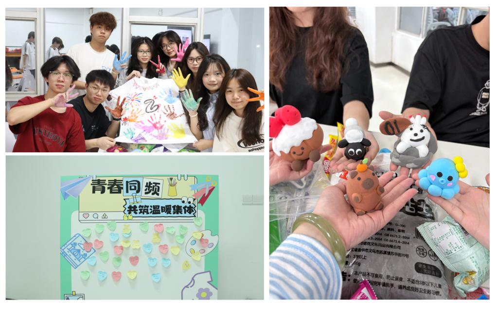 本次活动旨在通过DIY绘制T恤促进学生组织成员之间的心灵沟通与紧密协作,有效打破人际交往的壁垒,增强集体凝聚力。在DIY绘制T恤环节中,各部门成员拿起画笔,在洁白T恤上共绘缤纷图案;在趣捏黏土的环节中,大家将柔软的黏土捏成各种心仪的形状,每一个形状都仿佛是内心世界的一种投射。当活动接近尾声时,同学们纷纷写下对未来的期望并将便利贴贴在定制展板上。活动的最后,各部门将制作的活动作品进行展示,并合影留念。这不仅是创意与色彩的交织,更是心与心的靠近,大家在共同创作中敞开心扉,情感在笔触流转间升温,勾勒出独属于彼此的温暖情谊。
