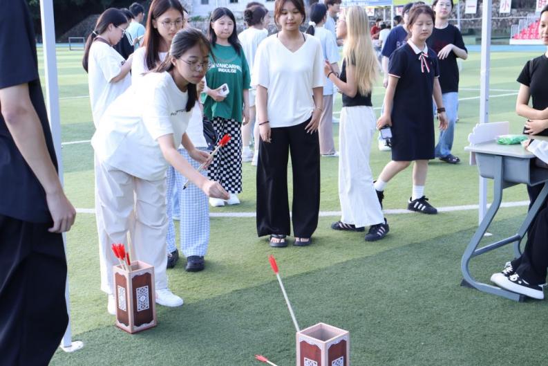 本次活动巧妙地将中秋的浪漫诗意与国庆的庄严喜庆融为一体,创新性地设计了集趣味性、文化性和知识性于一体的五大互动游戏环节。参与者通过挑战游戏赢得博饼机会,现场欢声笑语不断,气氛异常热烈。在“中秋诗词飞花令”环节,参与者引经据典,充分彰显了深厚的文化底蕴;在“国庆知识问答”环节,师生们踊跃抢答,在答题过程中加深了对家国历史的了解;在“国庆爱国标语仿写”区域,一句句饱含深情、创意十足的爱国标语表达了对祖国母亲最真挚的祝福与最坚定的热爱。博饼环节更是将活动推向高潮,清脆的骰子声与激动的欢呼声交织在一起,传递着对好运的期盼,更传递着学院大家庭的温暖与深厚情谊。