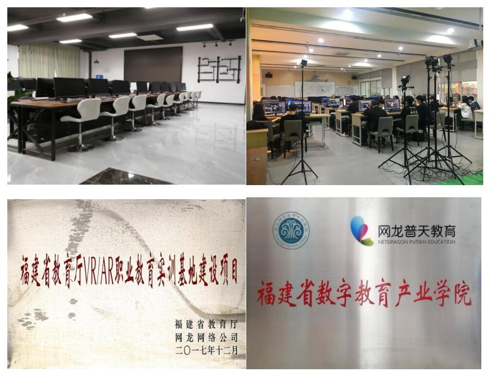 2019年与网⻰公司合作,获批福建省首批高职院校数字教育产业学院,建设了福建省VR/AR职业教育实训基地,共有五间实训室,分别是VR/AR技术实训室、VR/AR软件开发实训室、创新创业教育实训室、VR/AR资源开发中心、VR/AR三创基地。