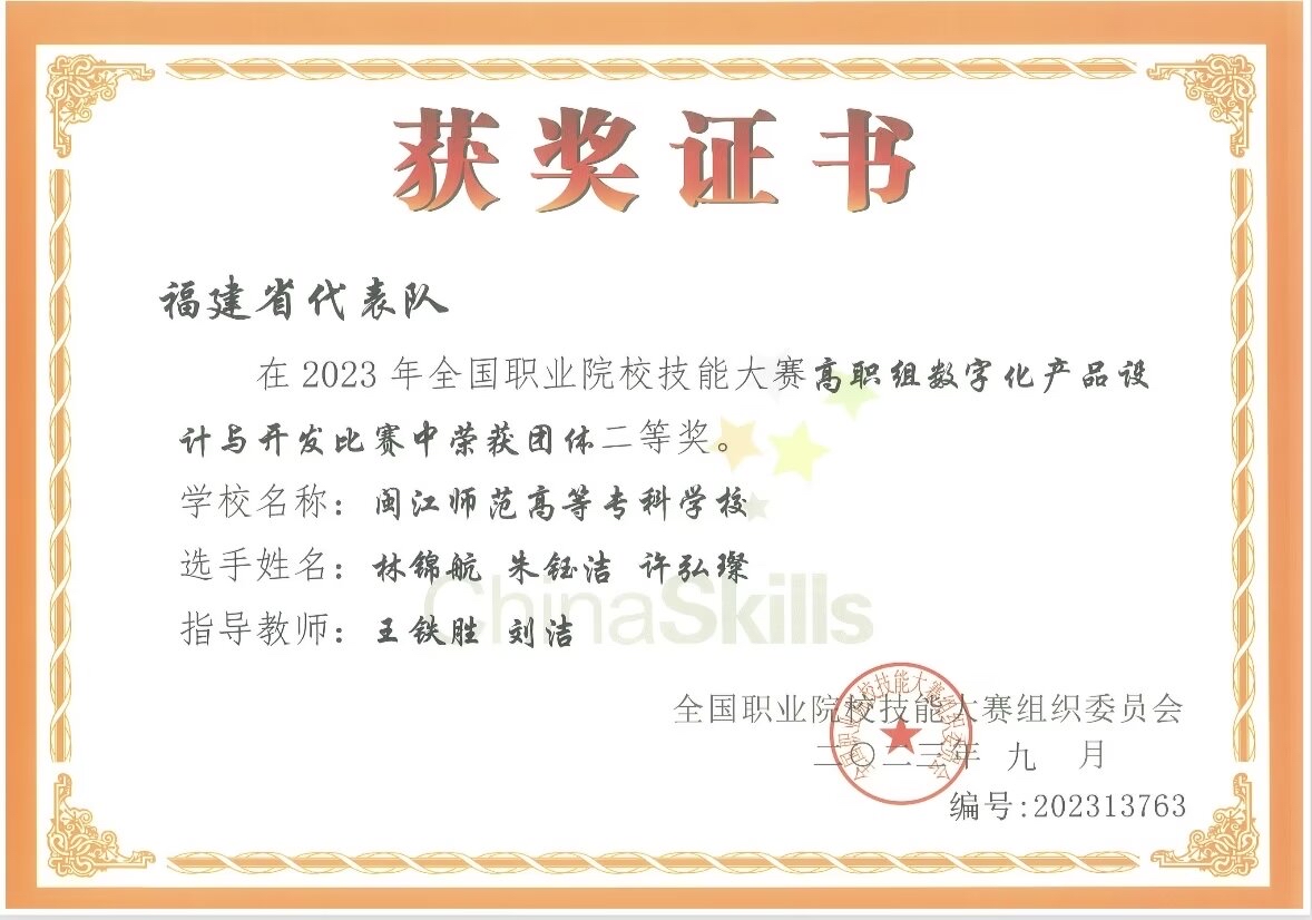2023年全国职业院校技能大赛(高职组)“数字化产品设计与开发”赛项获二等奖;