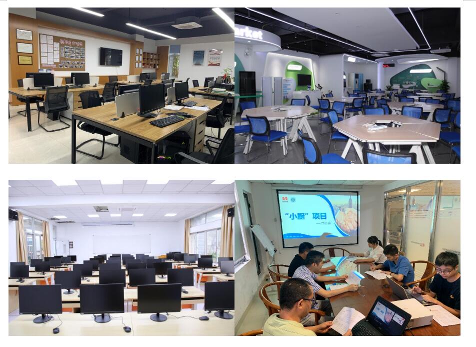 校内建有集“产、学、研、赛、创”五位一体的“生产性实训基地•软件研发中心”,同时拥有二十余间校内专业实训场地及十余家校外实训基地。