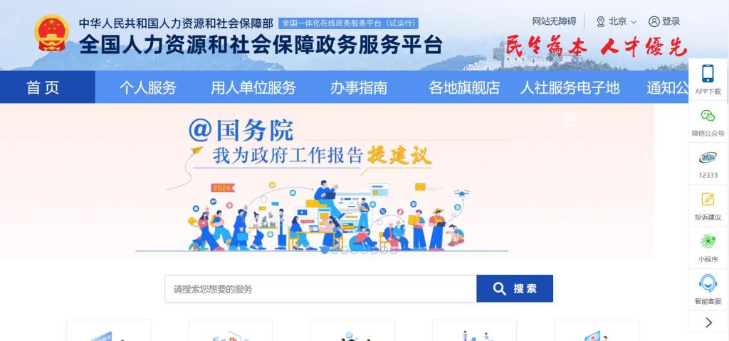 人力资源社会保障政务服务平台,网址:https://www.12333.gov.cn