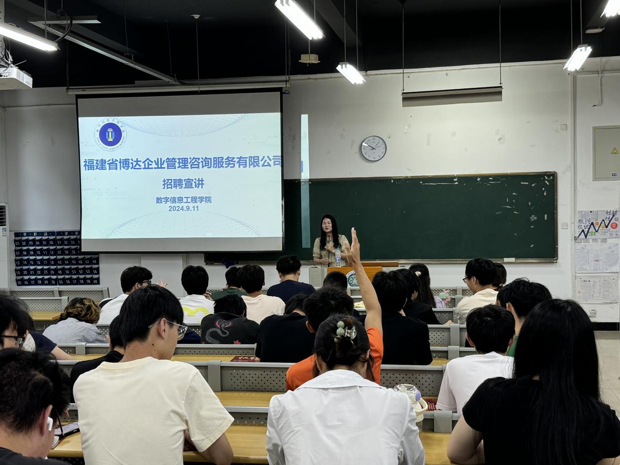 为推动我院2025届毕业生就业工作顺利开启,抢抓就业黄金期,助力毕业生顺利踏上职业征程,9月11日数字信息工程学院邀请中移铁通有限公司为2025届毕业生开展线下招聘宣讲,搭建学生与企业之间的桥梁。数字信息工程学院2025届毕业生参加本场宣讲会。