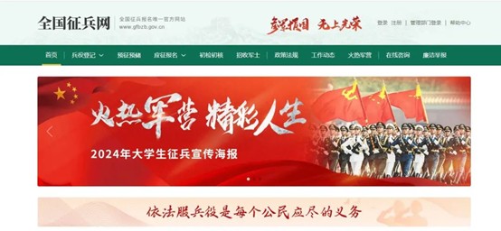 在全国征兵网(https://www.gfbzb.gov.cn/)首页,点击“兵役登记”;
