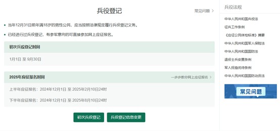 在这个页面中,会告知我们报名时间以及参军的政策说明,建议看后,点击“初次兵役登记”,迈出你军旅生涯的第一步吧!