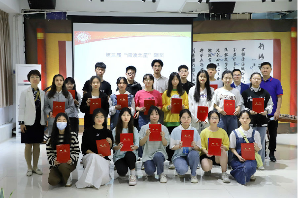 为推进书香校园建设,学校第三届“阅读之星”评选活动于2021年4月至12月有序开展。启动活动首先为朱敏、杨艳、吴霖莹等获得“阅读之星”光荣称号的21位同学颁奖。活动接着为获得“悠悠书香情怀浓,点点赛趣韵味长”线上竞赛活动获奖代表吴王栩、杜琼、沈君等同学颁奖。