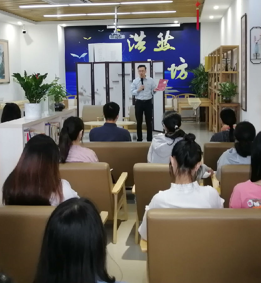 10月20日下午,“庆祝建党百年大学生佳作”品读沙龙暨冰心读书会社刊《漀》第三期建党百年专号发布活动在我馆浩然书坊举办。这场沙龙活动由我馆和党委宣传部主办,冰心读书会、新思想读书社承办,冰心读书会副会长、社刊《漀》编辑部主任葛洁薇同学主持,冰心读书会、新思想读书社学生及旗山各系部学生代表共41人参加。