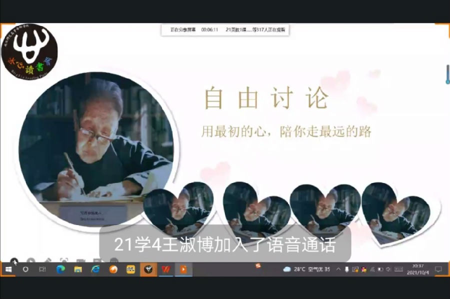 2021年10月5日是我们亲爱的校友冰心先生121周年诞辰日。10月4日晚,由我校图书馆主办、团委社团管理中心和冰心读书会社团承办的冰心读书会第18期“七天记”读书品牌活动“倾心相遇 温暖陪伴——纪念冰心诞辰121周年”活动在线上举行。